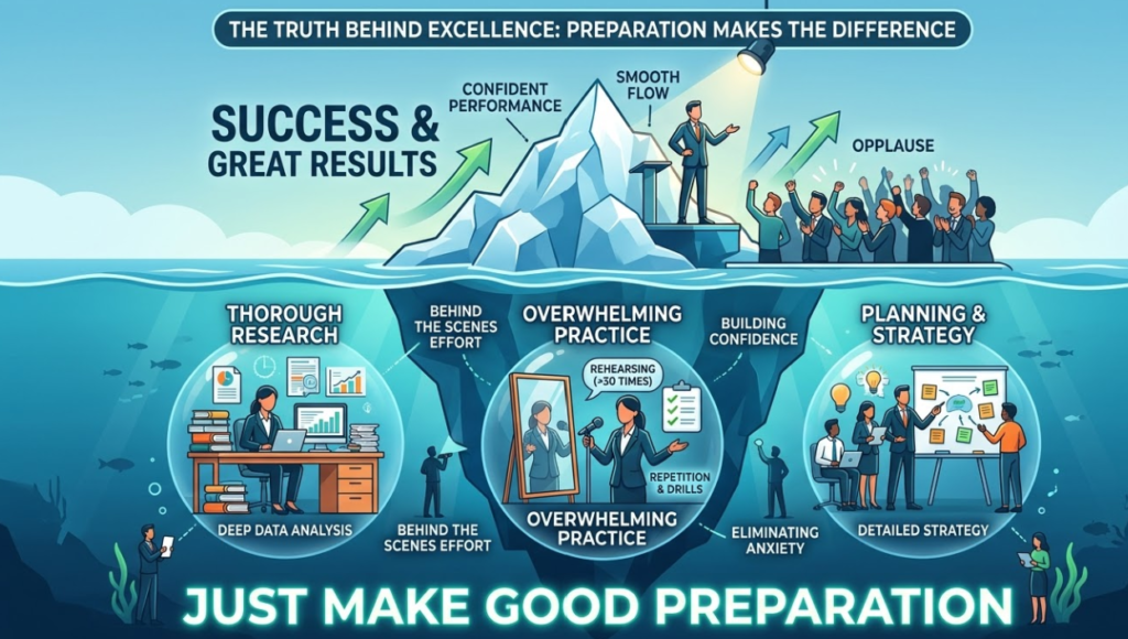Struck by those words, I decided to practice relentlessly—more than 30 times—before an important presentation of my own. Curiously enough, when the actual day came, I wasn’t nervous at all. The words just flowed naturally and smoothly.
